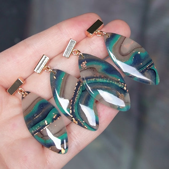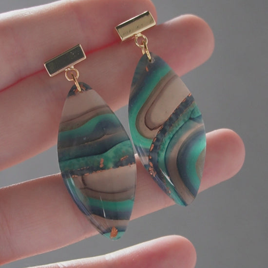 Gold plated, unique and light wear polymer clay earrings.