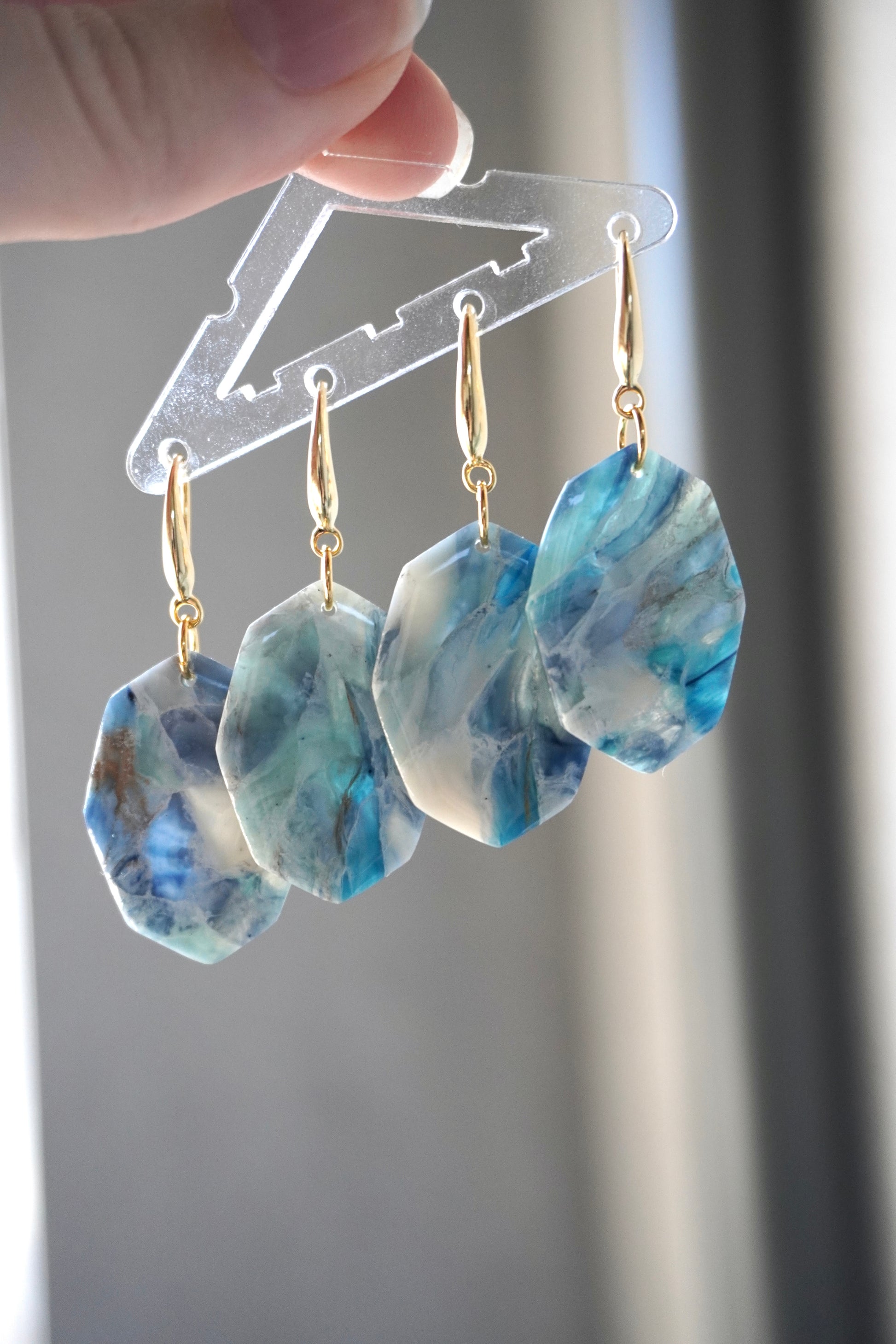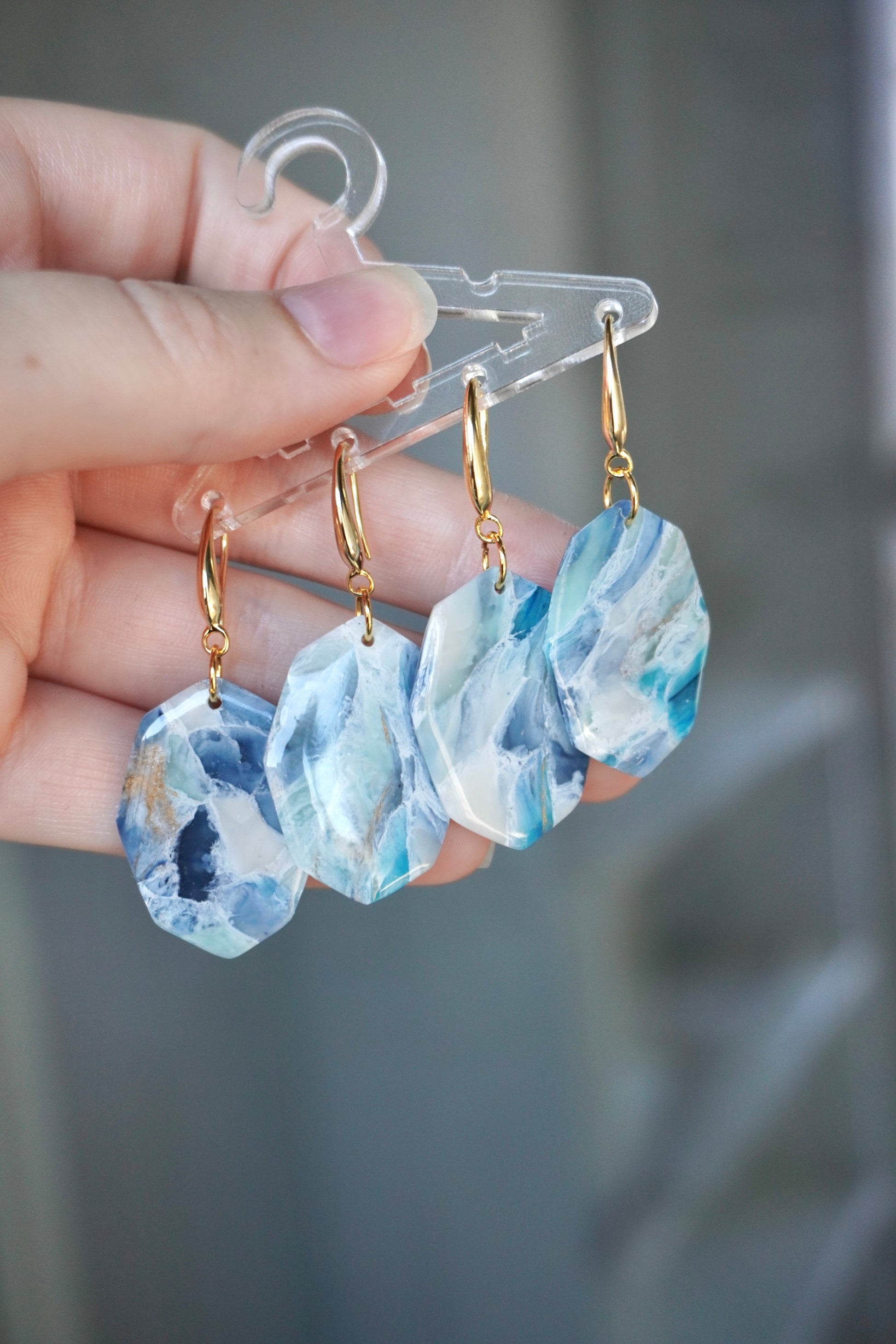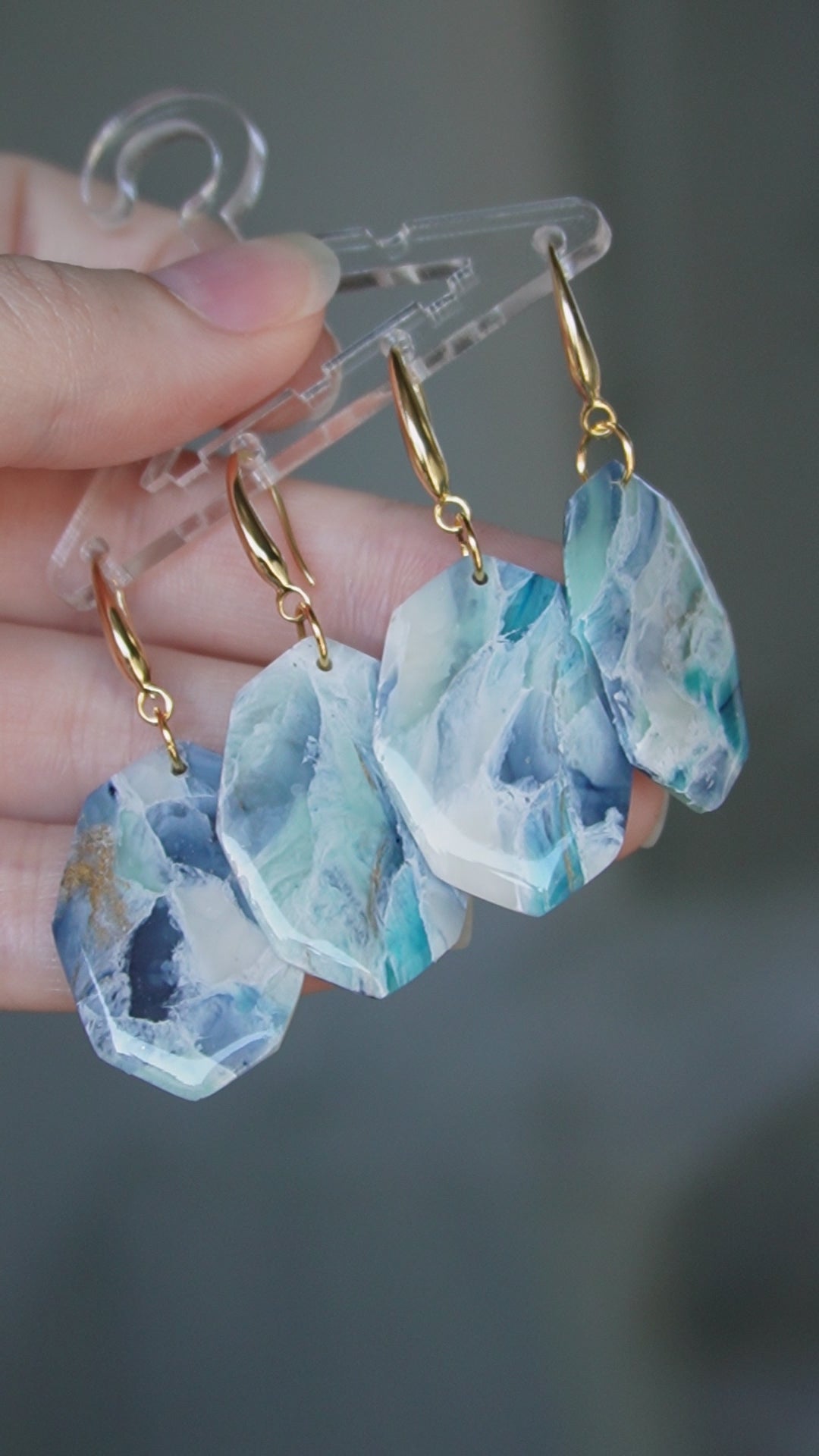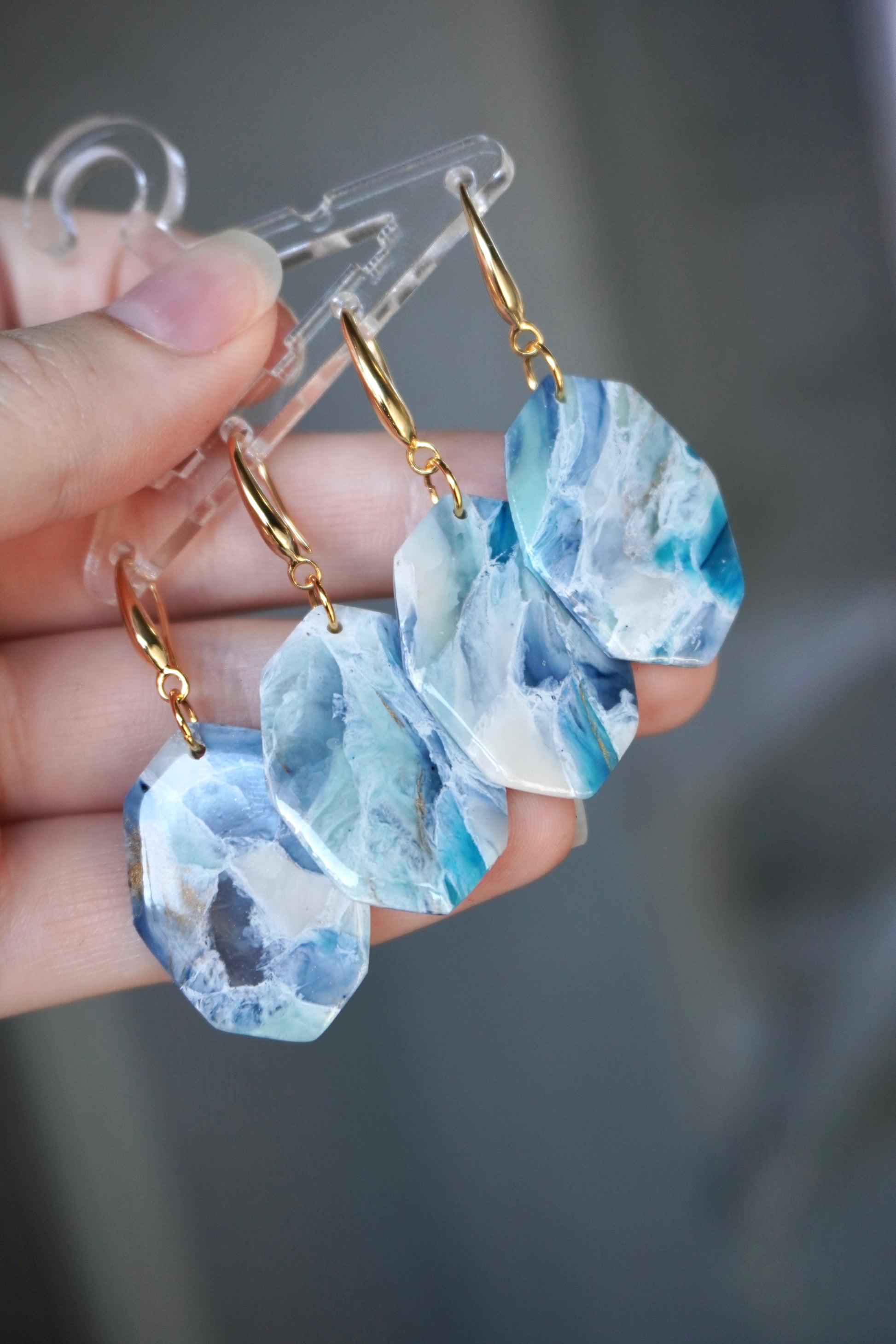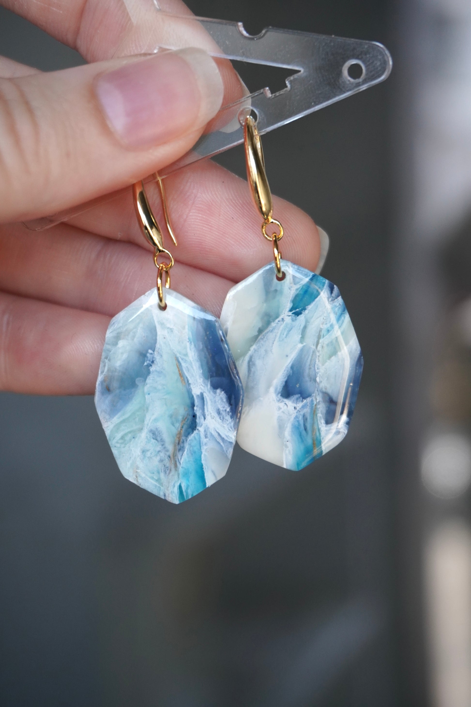 Gold plated, unique and light wear polymer clay earrings.
