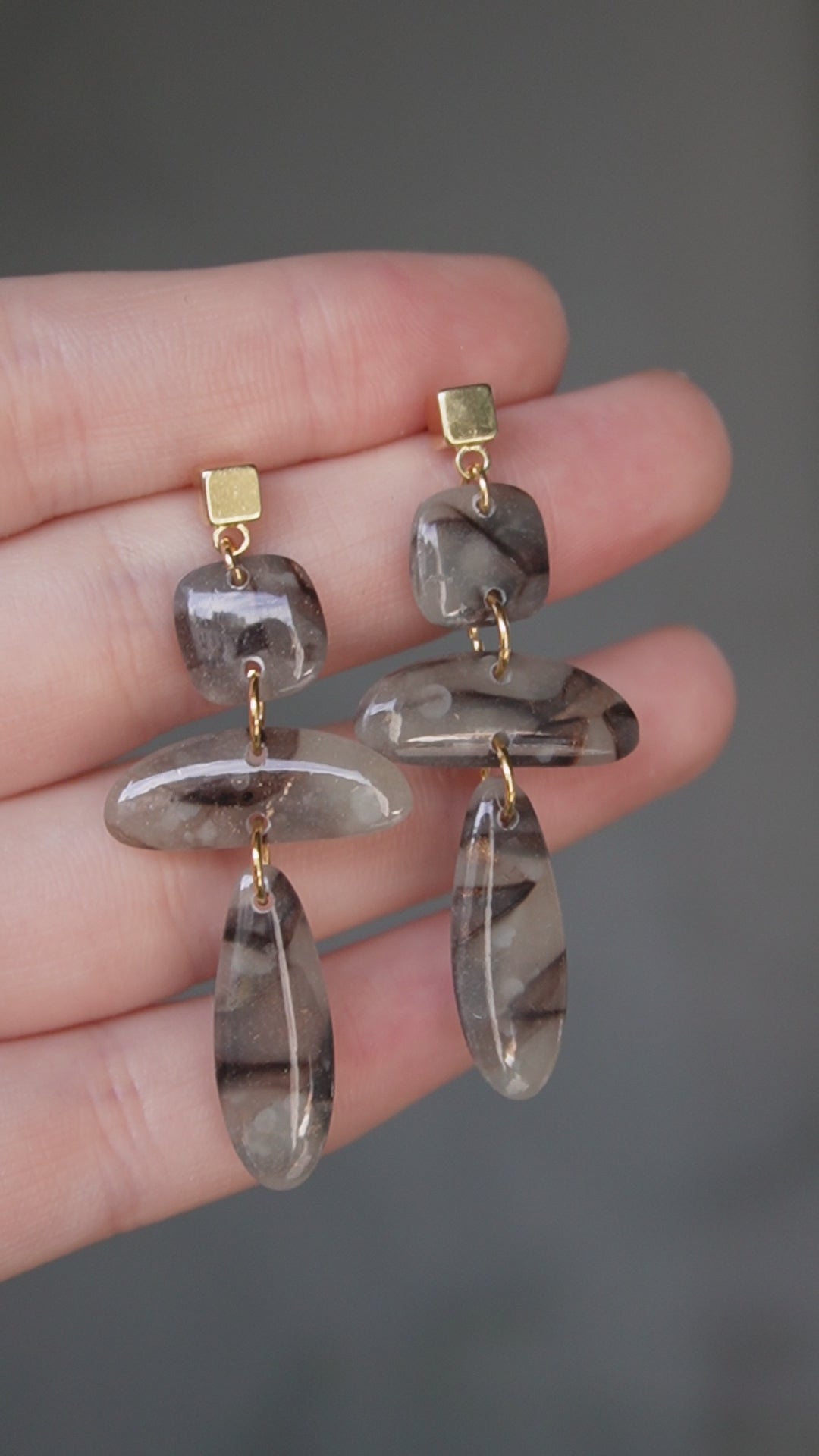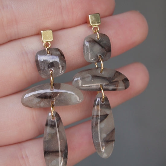 Gold plated, unique and light wear polymer clay earrings.