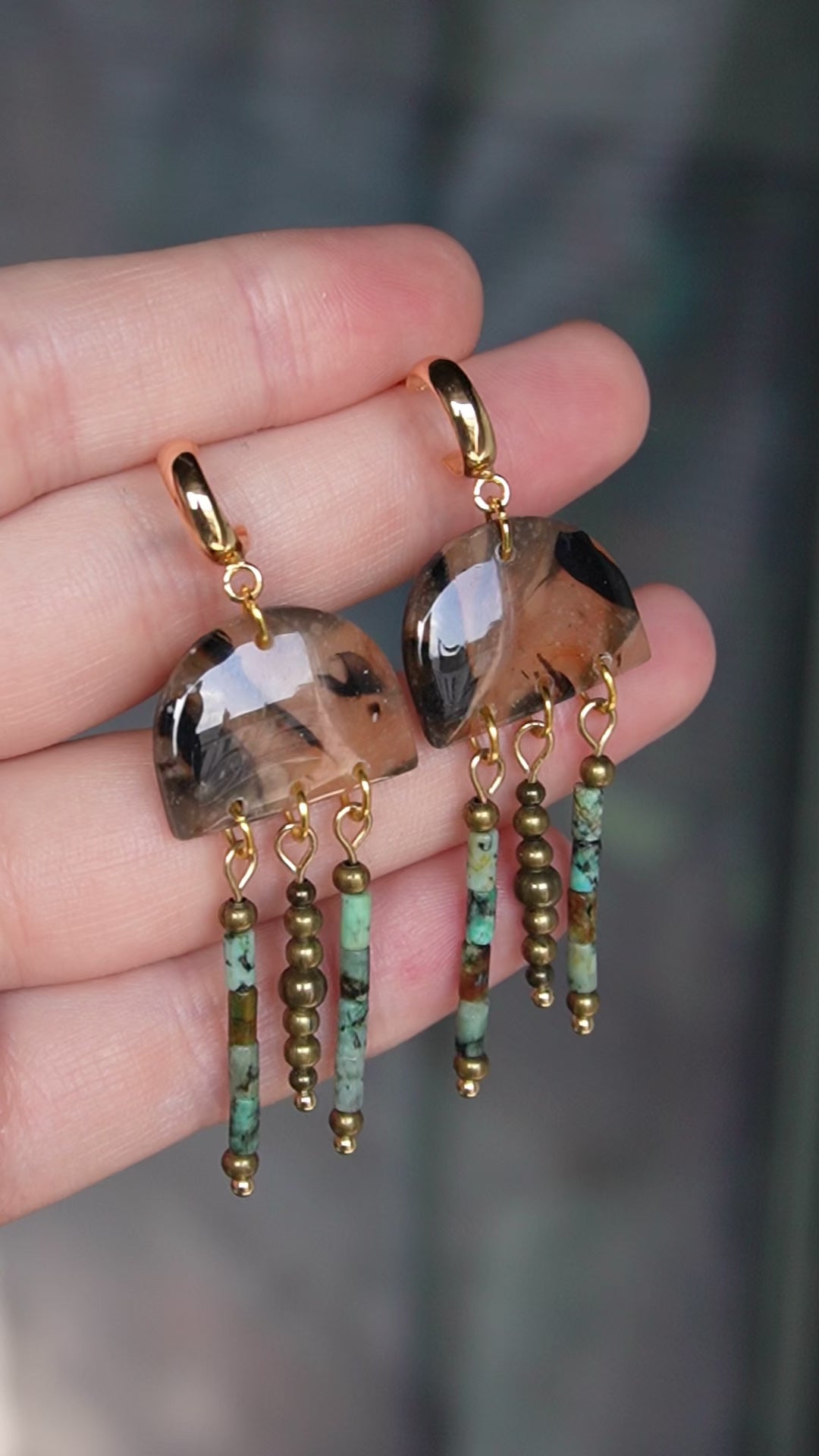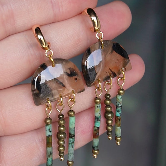 Gold plated, unique and light wear polymer clay earrings.
